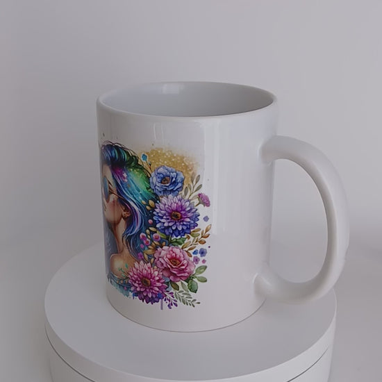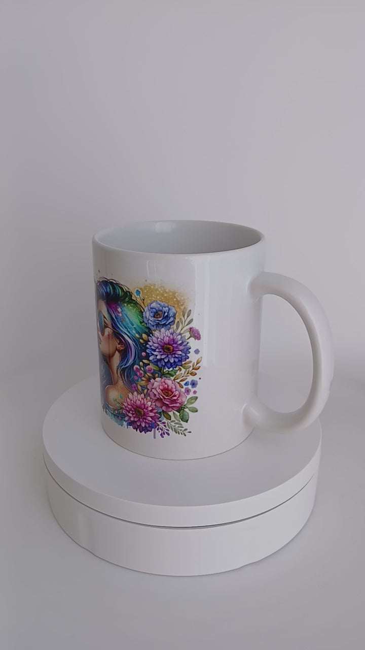 Tasse blanche en céramique sublimée avec un cheval ,une jeune fille et "j'suis belle".
