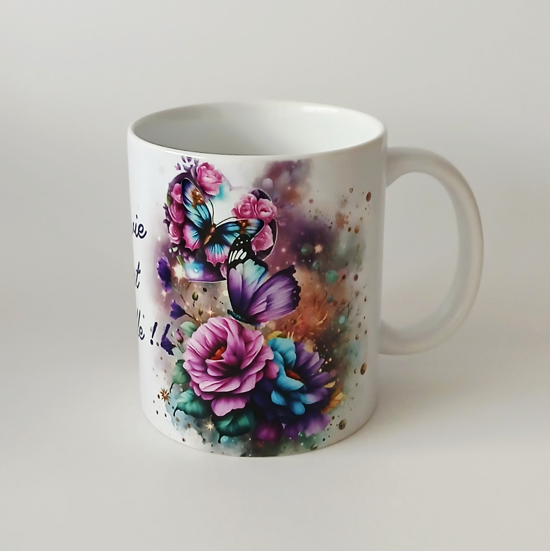 Tasse blanche en céramique sublimée avec "La vie est belle"